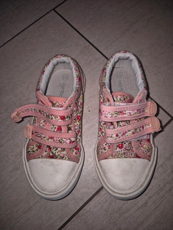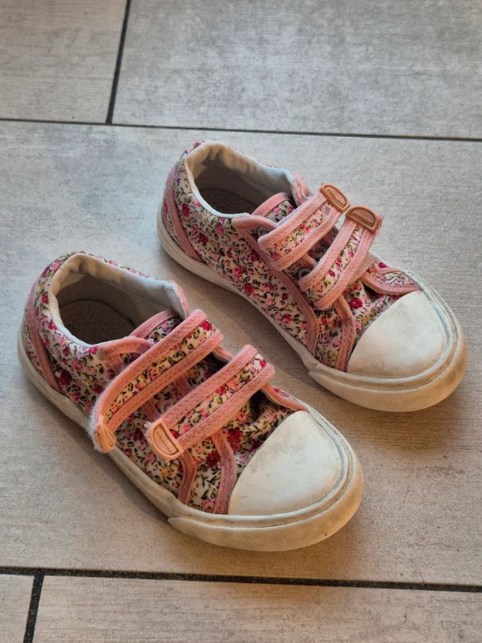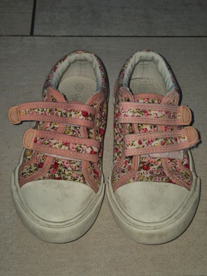 Baskets fleuries esprit liberty à scratch Vertbaudet 29. Lavées, prêtes à être portées ! De légères traces sur la pointe blanche mais bien moins visibles en vrai que sur les photos. #jubou95300_fille4ans #jubou95300_fille5ans #jubou95300_fille6ans