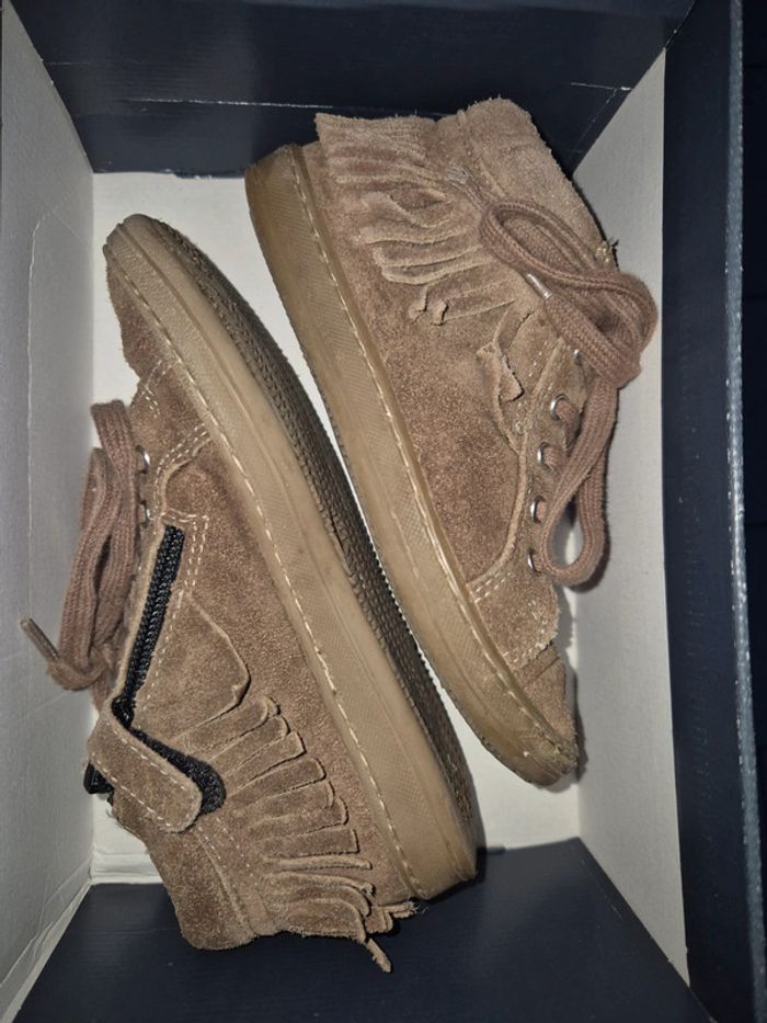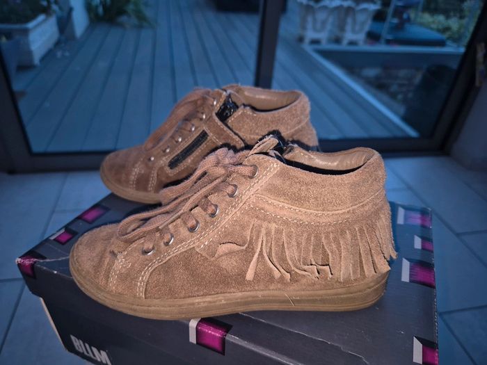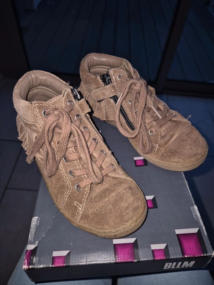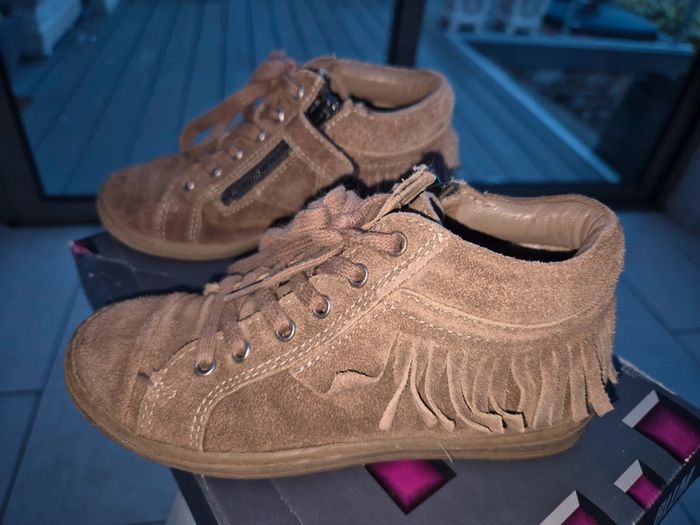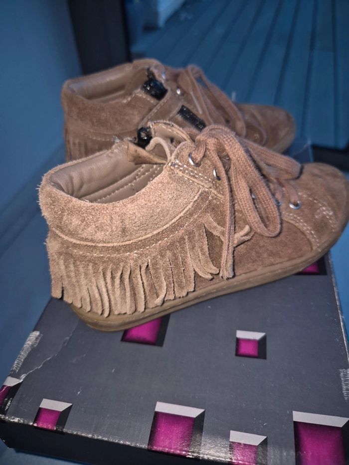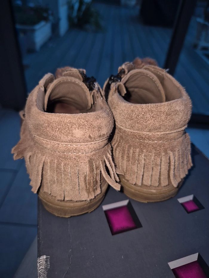 Bottines Bellamy taupe 28 en bon état avec zip sur le côté, achetées neuves en magasin et peu portées. Dessus cuir vintage taupe et franges, interieur tout cuir. #jubou95300_fille4ans #jubou95300_fille5ans