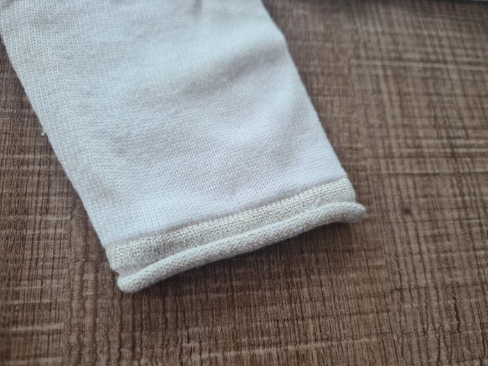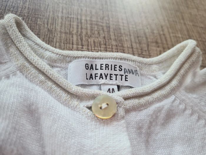 Boléro crème avec liseré doré et jolis boutons nacrés Galeries Lafayette petit 4 ans qui équivaut à un 3 ans ! À noter le prénom de ma fille légèrement visible sur l'étiquette. #jubou95300_fille3ans #jubou95300_fille4ans