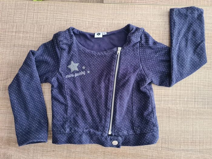 Gilet zippé Z Grain de blé "mini punky" 36 mois 98 cm en excellent état. La marque taille plutôt petit selon moi. Très pratique et adorable pour un style bébé rock ! Petits points irisés ! #jubou95300_fille24mois #jubou95300_fille2ans #jubou95300_fille3ans