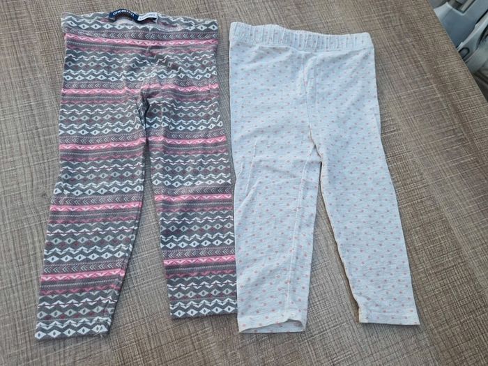 L'un marqué 23 mois 86 cm, l'autre marqué 3 ans 98 cm mais les deux taillent en réalité pareil (cf photos !) comme des 2 ans. Prénom de ma fille légèrement visible sur l'étiquette de l'un des deux leggings. #jubou95300_fille24mois #jubou95300_fille2ans