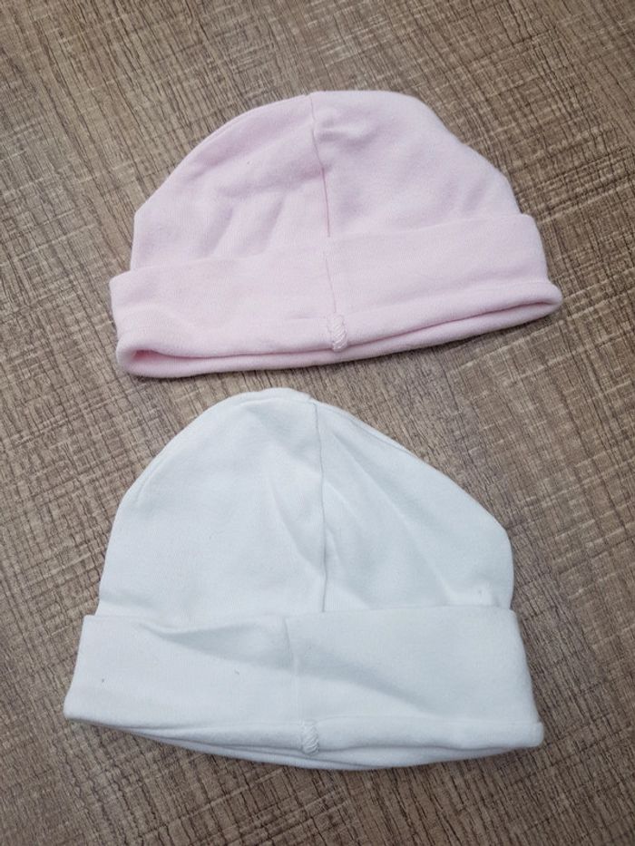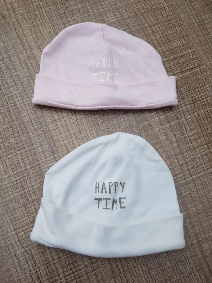 Lot 2 bonnets naissance "Happy time" rose et blanc. Adorables ! En parfait état. #jubou95300_fille1mois