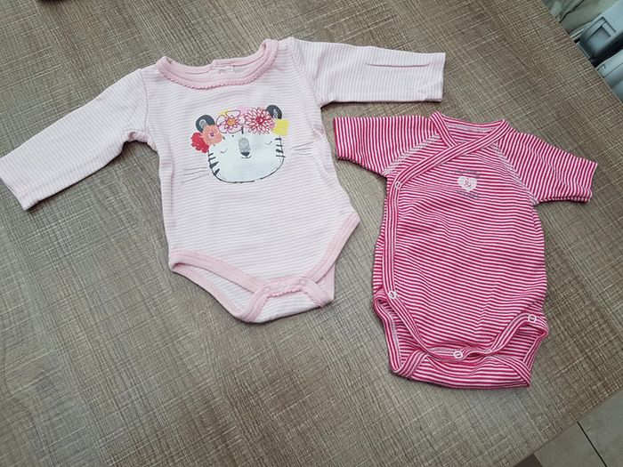 Lot 2 bodys, DU PAREIL AU MÊME et Grain de blé 1 mois en TBE, l'un manches courtes et l'autre manches longues. #jubou95300_fille1mois