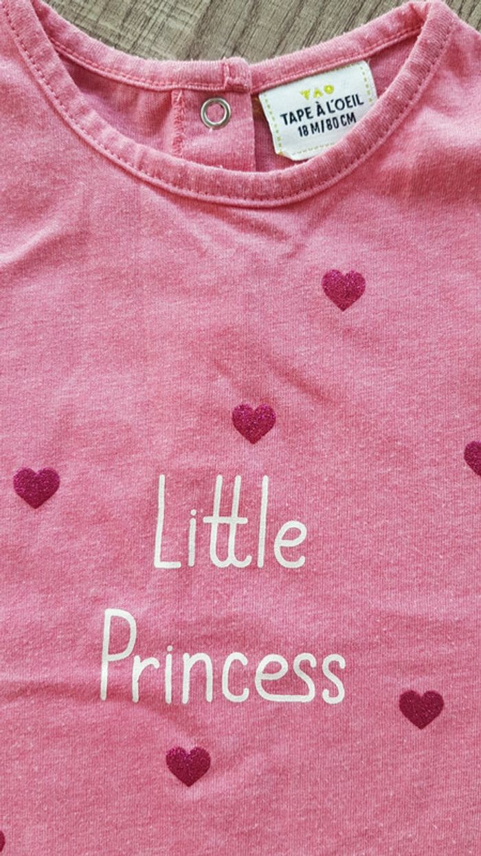 T shirt tape à l'œil 18 mois en très bon état. Boutons au dos : plus simple à enfiler ! Motifs petits cœurs roses pailletés ! #jubou95300_fille18mois