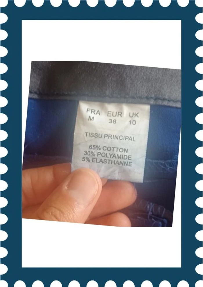 Joli pantalon bleu nuit Effet enduit Swarovski taill 38 En très bon état. 65% coton 30% polyamide 5% elasthanne