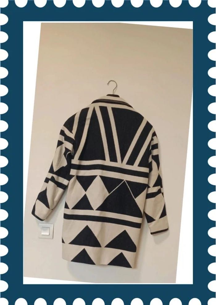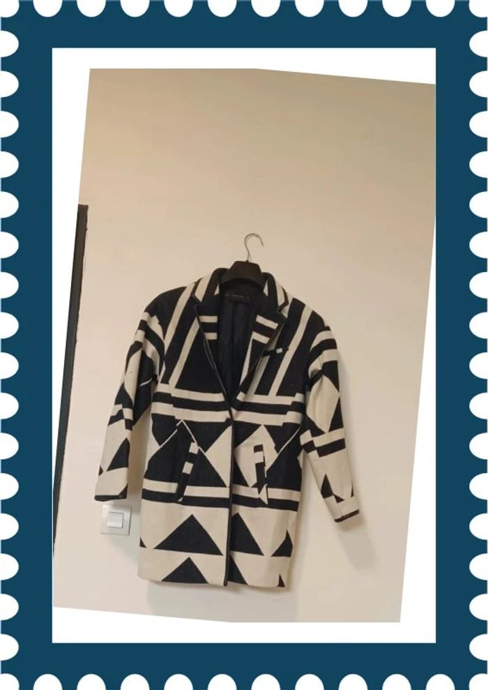 Très joli manteau noir et blanc Zara Basic En très bon état général avec juste le tissu à l'arrière du col qui s'effrite un peu, voir photos. Acrylique, polyester, laine. Manteau qui se ferme avec un seul bouton.