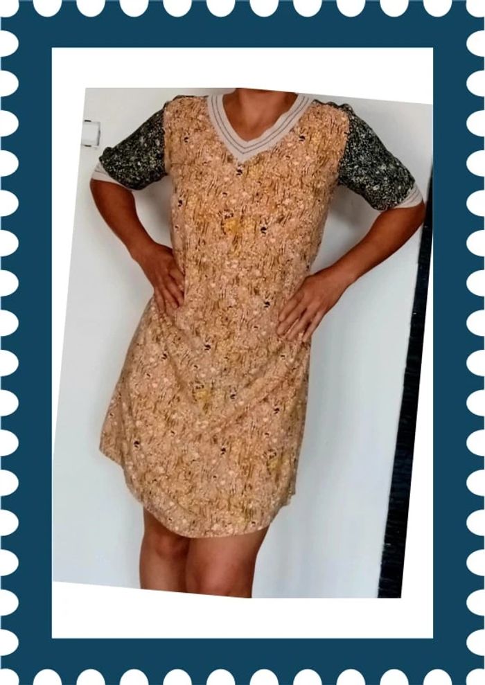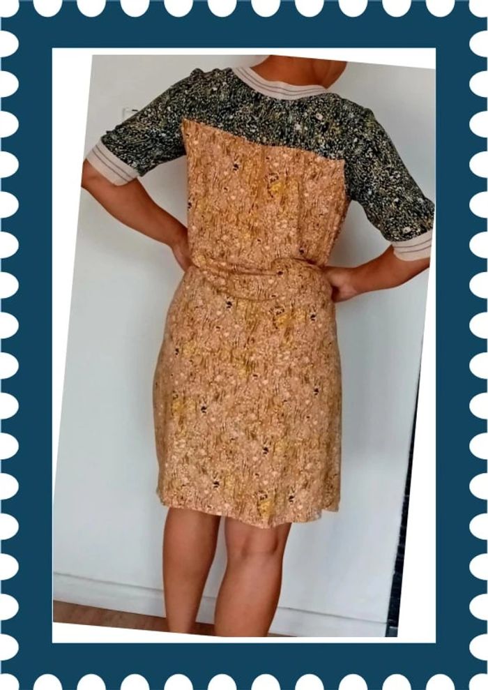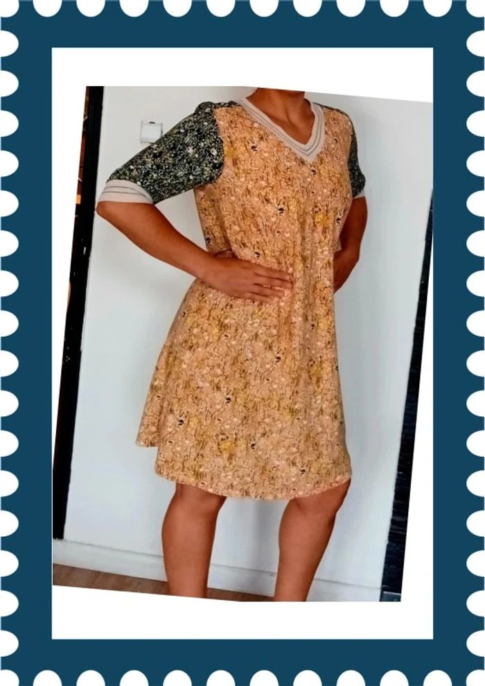 Jolie robe jaune moutarde et verte En très bon état 100% polyester Taille 40 INDIE + MOI