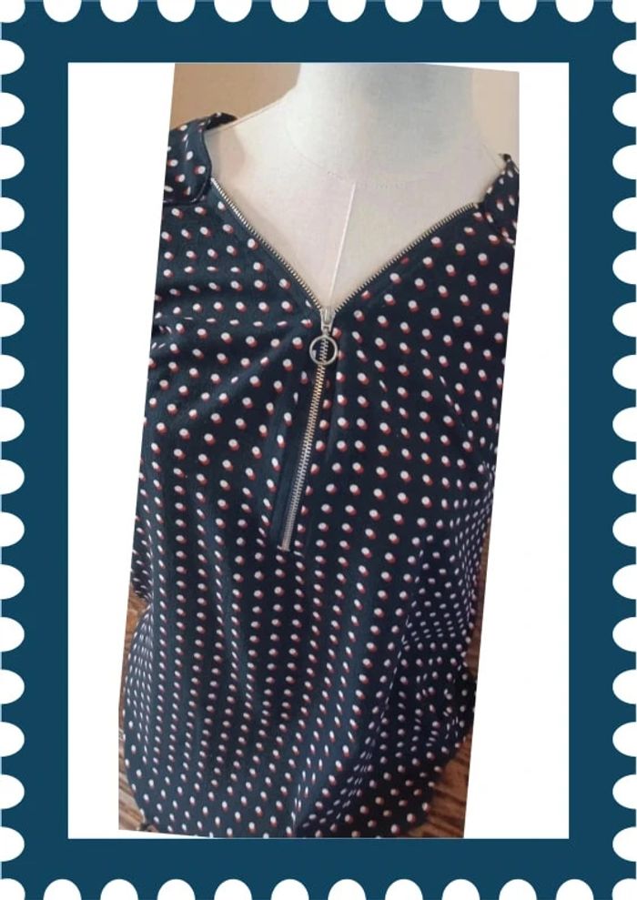 Blouse kiabi taille S Bleu marine à pois rouge Zip au niveau du décolleté En très bon état 97% polyester 3% elasthanne