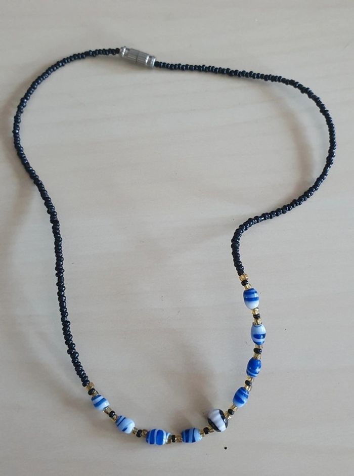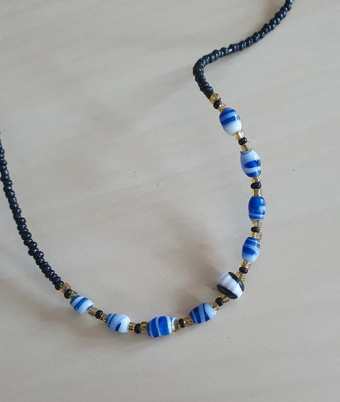 Collier perles de rocailles noires et bleues - photo numéro 1