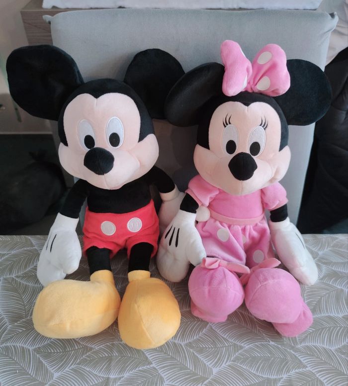 Mickey et Minnie de 45cm environ achetés chez Disneyland Paris. En état neuf.