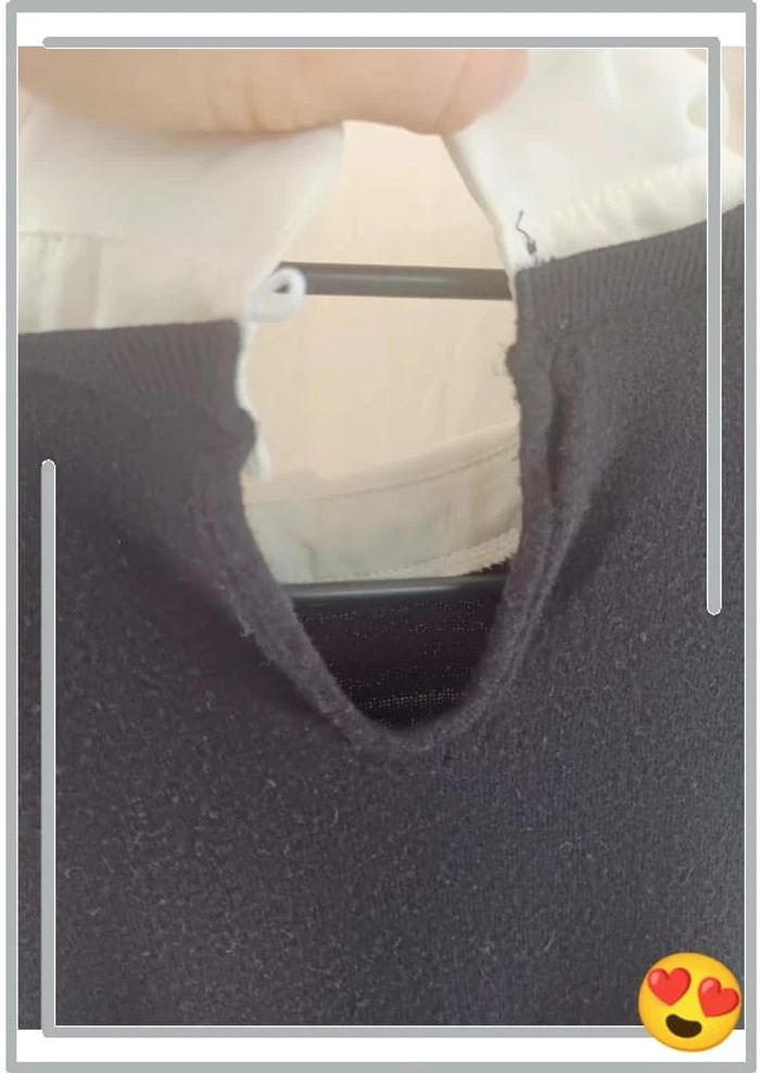 Pull noir avec col claudine blanc Kiabi Taille 46/48 Très bon état mais manque le bouton à l'arrière
