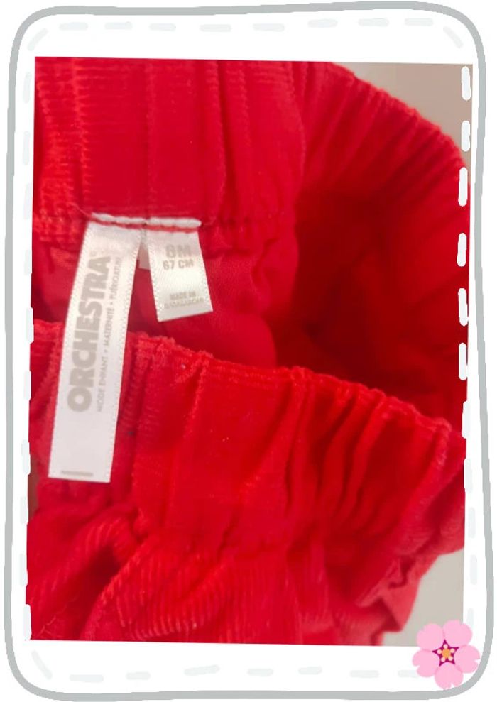 Pantalon rouge en velours côtelé Orchestra 6 mois Très bon état