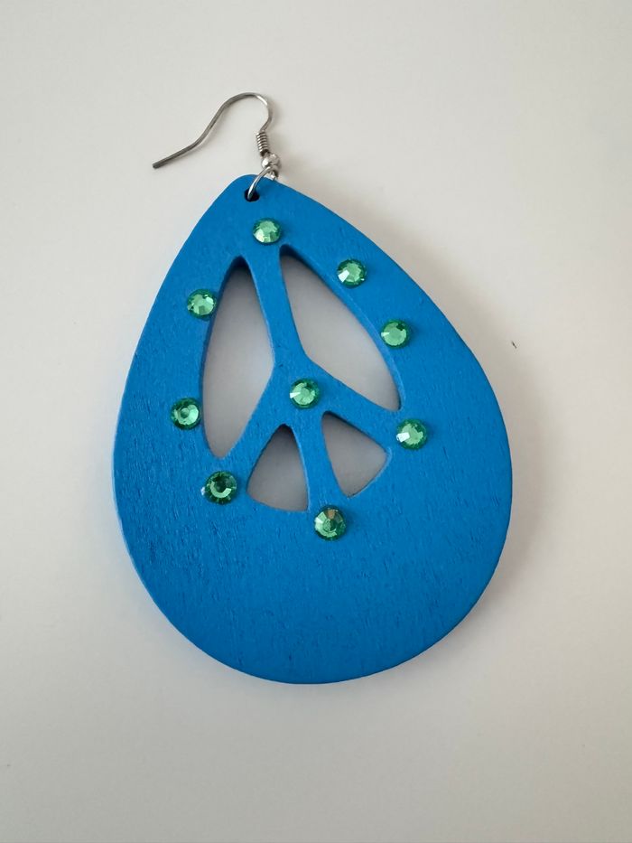 Bonjour je vends ces boucles d'oreilles fantaisie bleu matiere bois