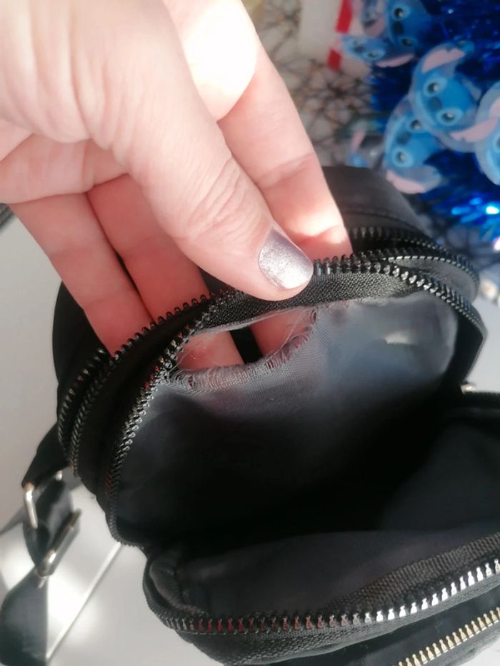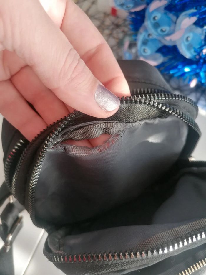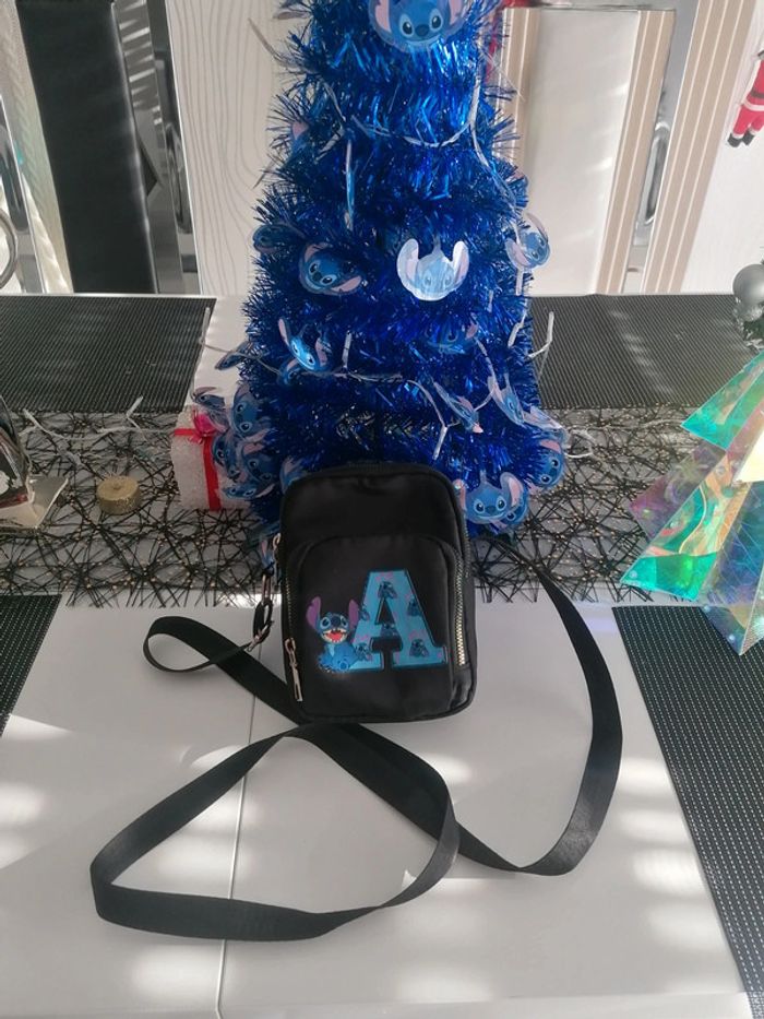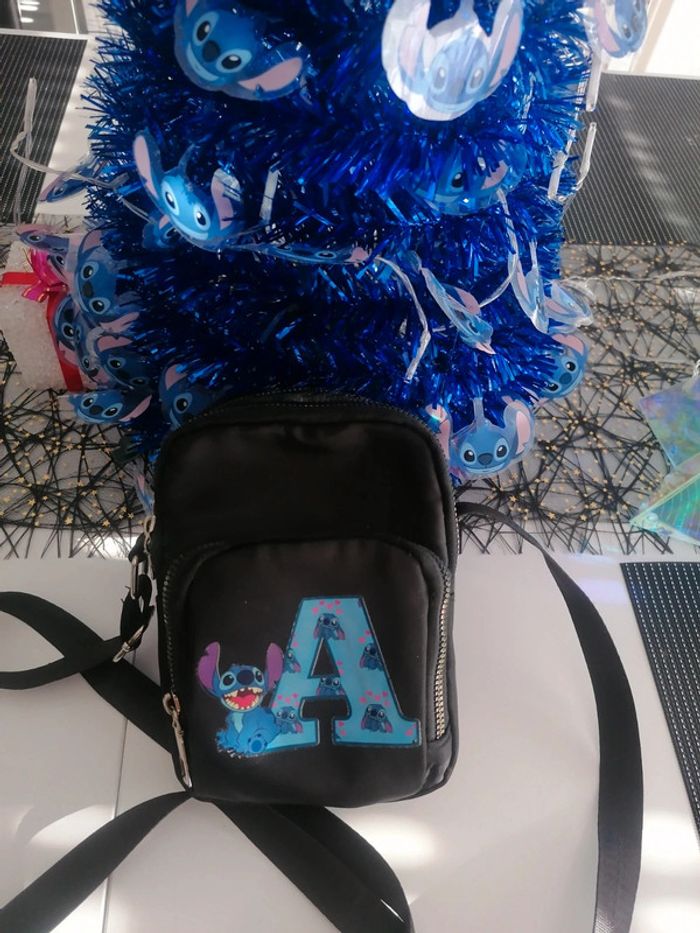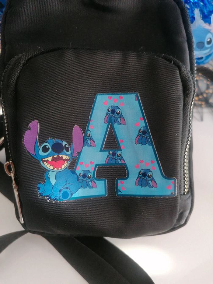 Sac saccoche noir Bandoulière réglable Stitch 🤩 avec lettre A (mon prénom) 😅 Attention ⚠️ troué entre 2 séparations de poches, rien de gênant Sinon très bien pour les fans de Stitch 😍