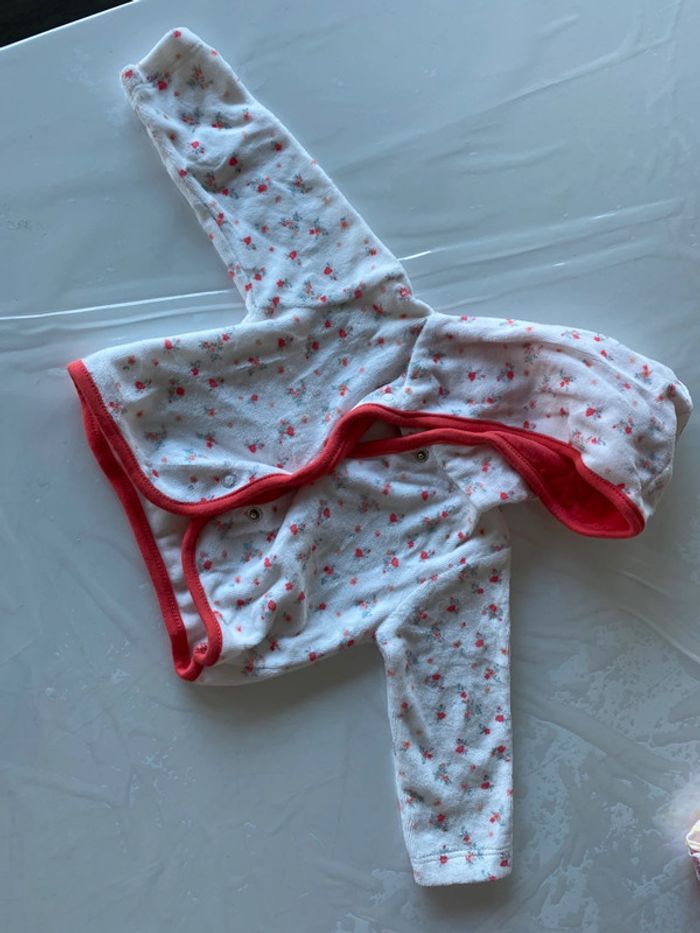 Pull et pantalon blanc et rouge. 62 cm effet velour Une petite tache au dos