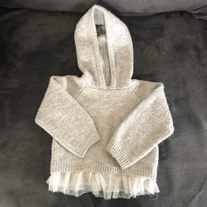 Pull à capuche Gris Bordure tulle 6/9 mois. 74 cm