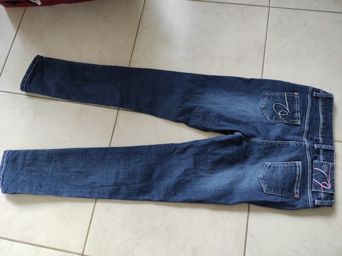 Jean bleu marine en très bon état peu mis. Avec élastique taille intérieur. Marque orchestra basic. Bcp d'autres habits fille 10 ans de tt photos possible