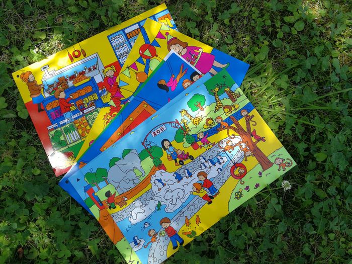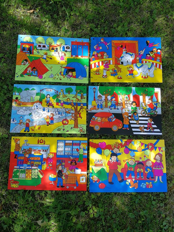 Planches rigide et épaisses 3mm, blanches de côté envers et avec les dessins de côté endroit, des dessins à thèmes différents comprenant les activités d’enfants, telles que le zoo, le cirque, le parc etc. Les planches sont très colorées, peuvent être utilisées comme décoration, comme sets de table, dessiner au dos blanc avec le feutre effaçable, je pense possible aussi. Elles sont toutes en très bon état, (quelques légères traces sur certaines planches) j’en ai 6, je vends le lot à 12€. Taille de la planche fait 36x24 cm, poids du lot 1,4kg #planches #jouet #planchesdessin #effacable