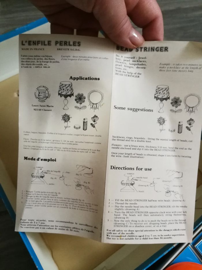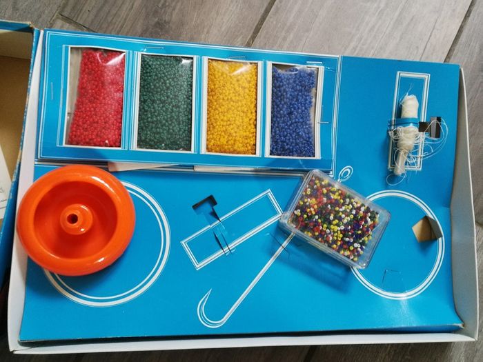 Jeu de perles, loisir créatif dès 5 ans, ancien, « enfile-perles », poids 315 g. Incomplet, il manque des pièces pour le moulin, il y a des perles, neuves. Bon état général pour l’ensemble. #jeudeperles #loisircreatif #jeuancien