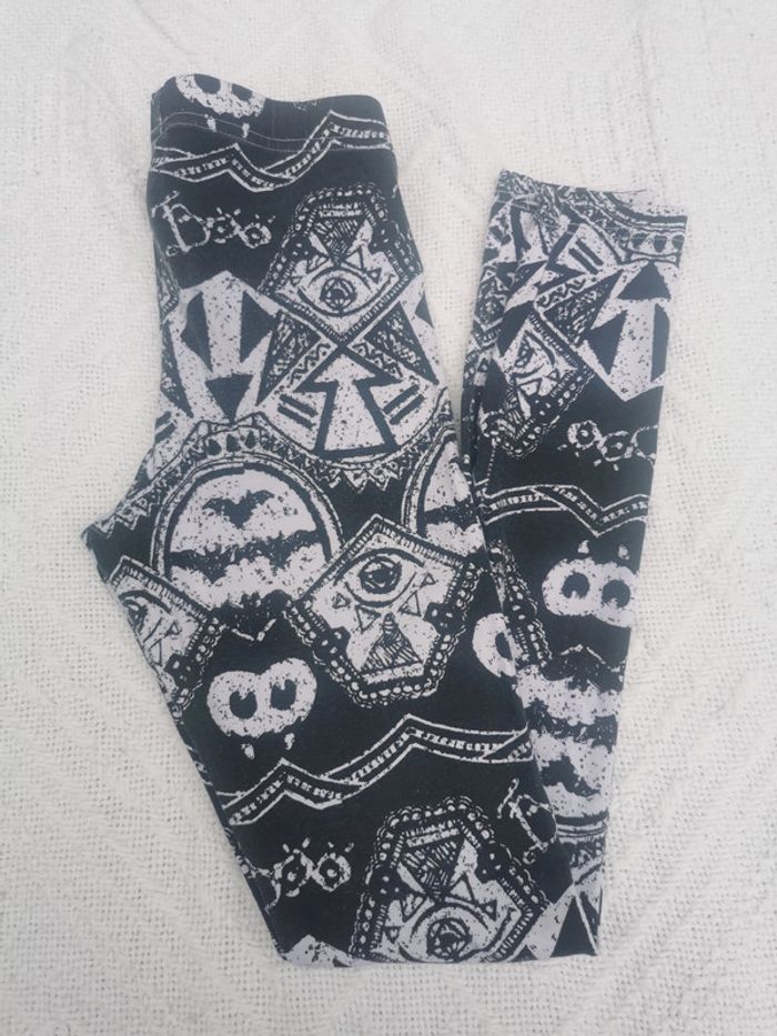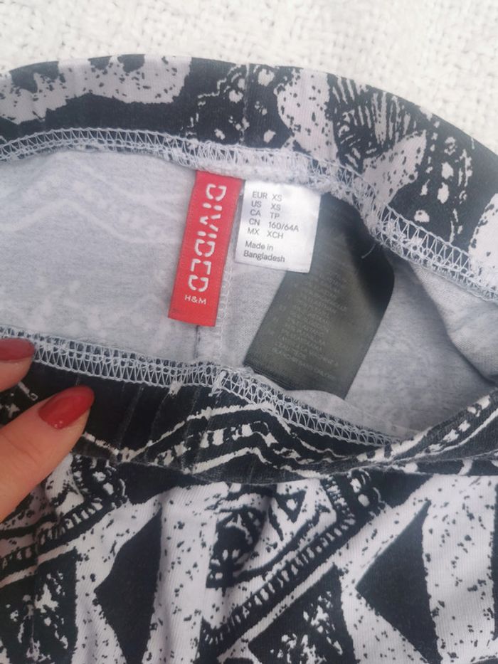 Legging noir et blanc motifs ethniques, marque H&M Divided, taille XS, 95% coton, 5% élasthanne, en bon état général, poids 115g. #legging #leggingethnique #leggingxs #leggingh&m #h&mdivided