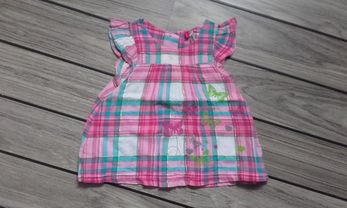Tunique manches courtes jacquard rose turquoise fille taille 6 mois marque Orchestra #salvm6mois
