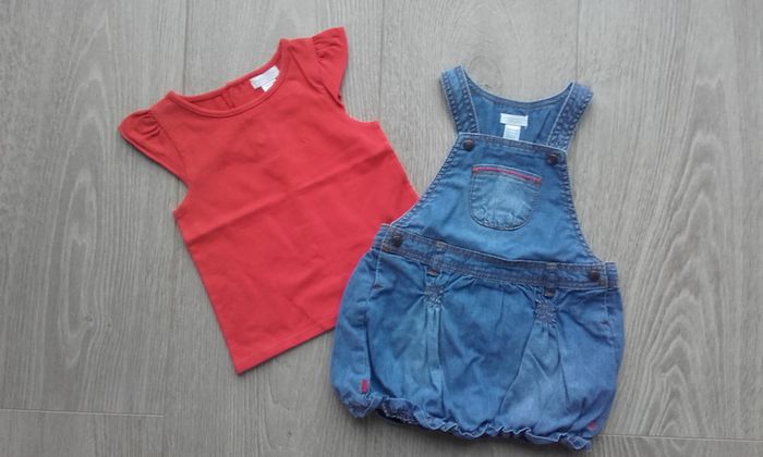 Robe salopette boule été taille 6 mois + tee shirt rouge manches courtes taille 6 mois #salvm6mois
