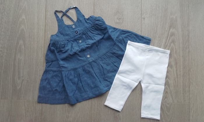 Robe bretelles couleur jean été taille 6 mois + caleçon blanc taille 6 mois #salvm6mois
