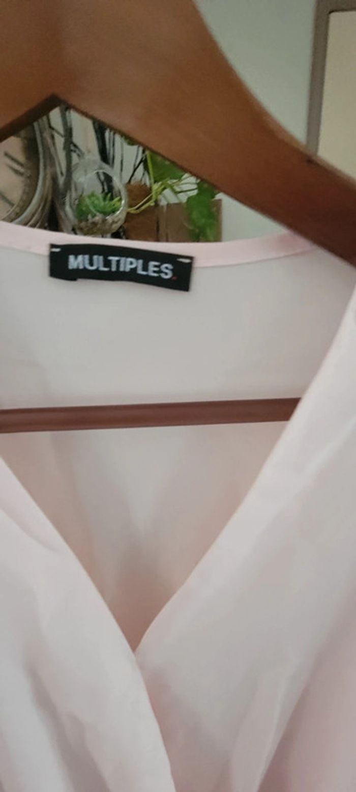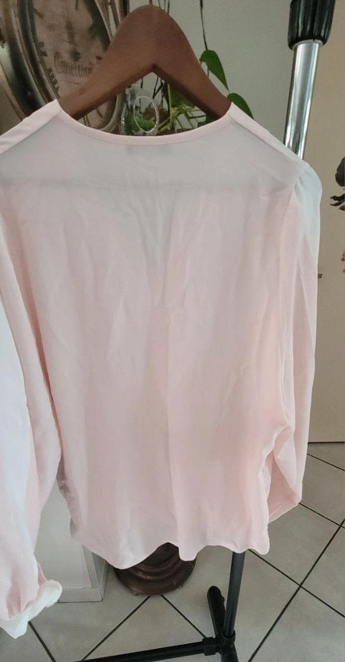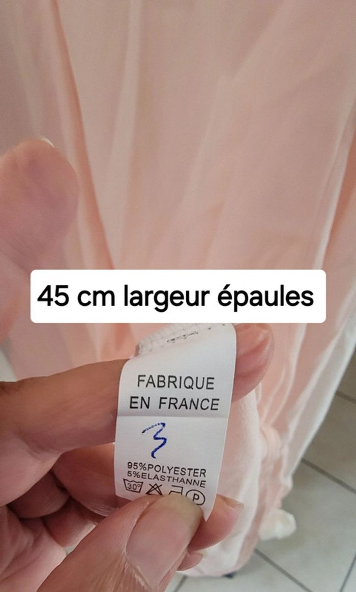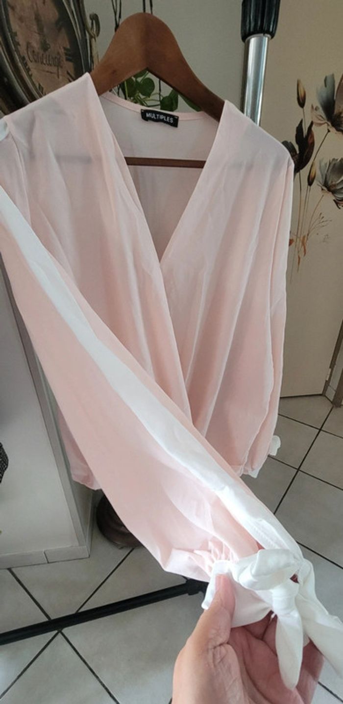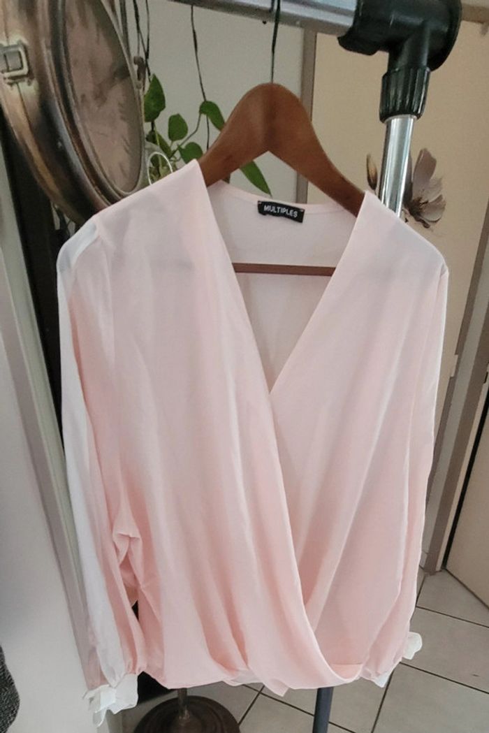 Blouse fabrication Française Blouson devant et plus long au dos Bi coloré saumon abrico et blanc