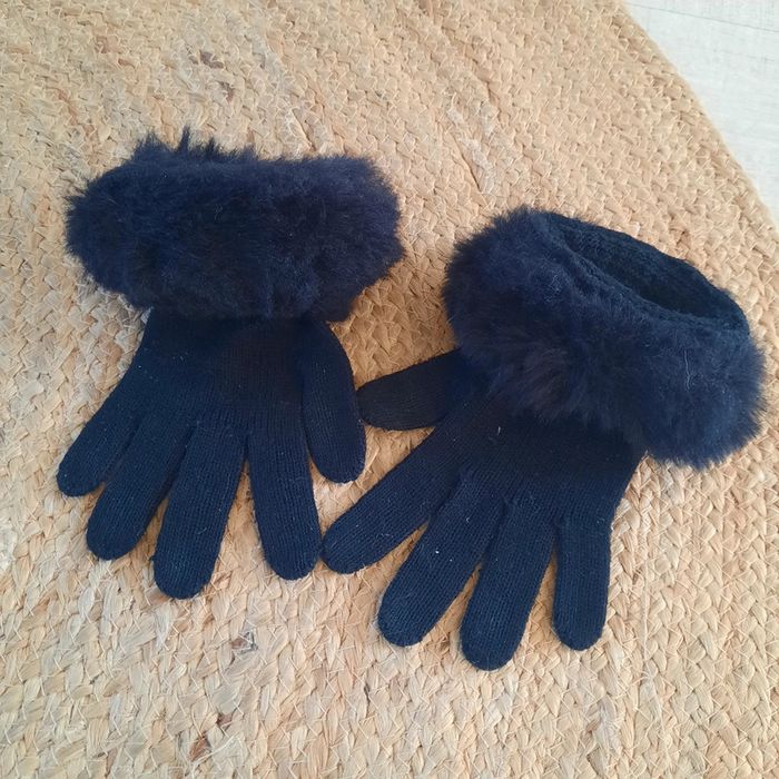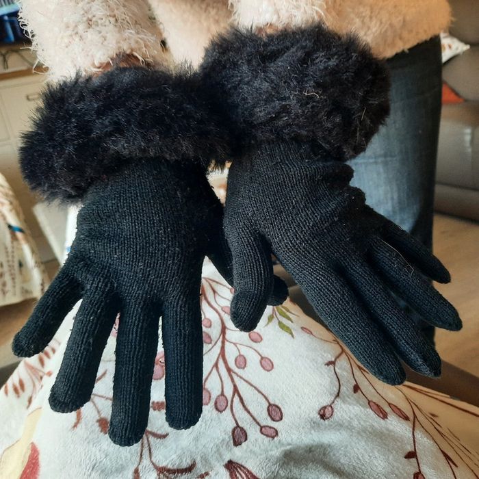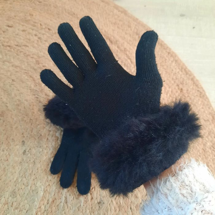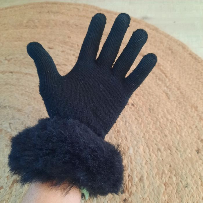 Gants noirs avec une fausse fourrure aux poignets ce qui permet d empêcher le froid de passer dans les manches . Portés ils restent un bon état général. N hésitez pas à visiter mon profil et laissez vous guider par mes différents # #clementine13430accessoires #gantsnoirs