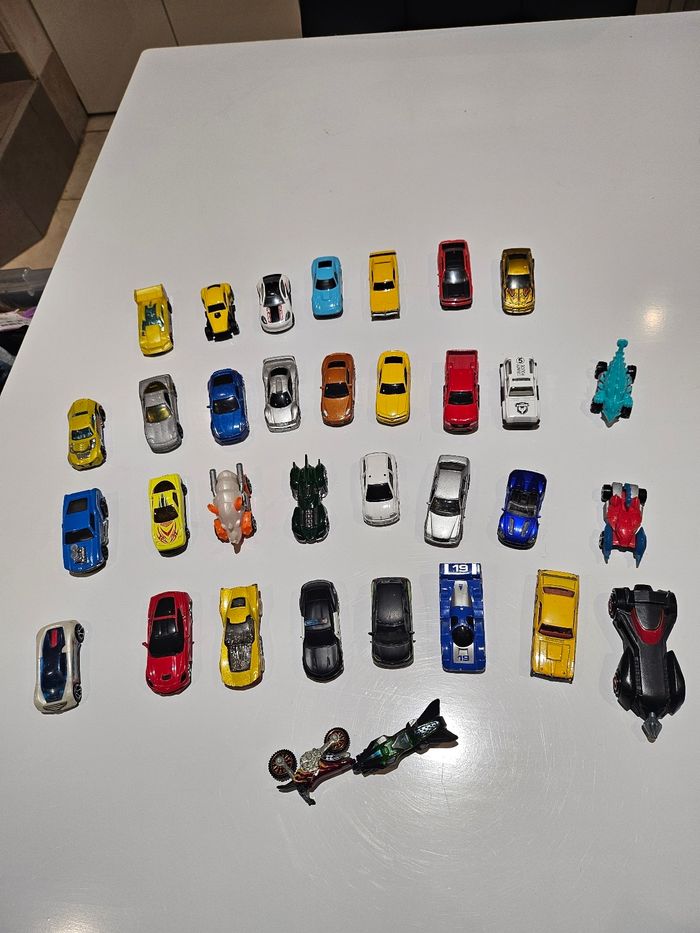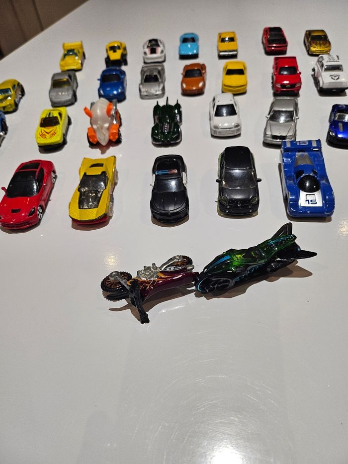 Lot de 32 voitures et de 2 motos. Toutes marques et différents états (bon état à neuf).