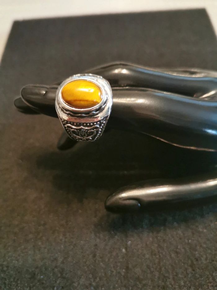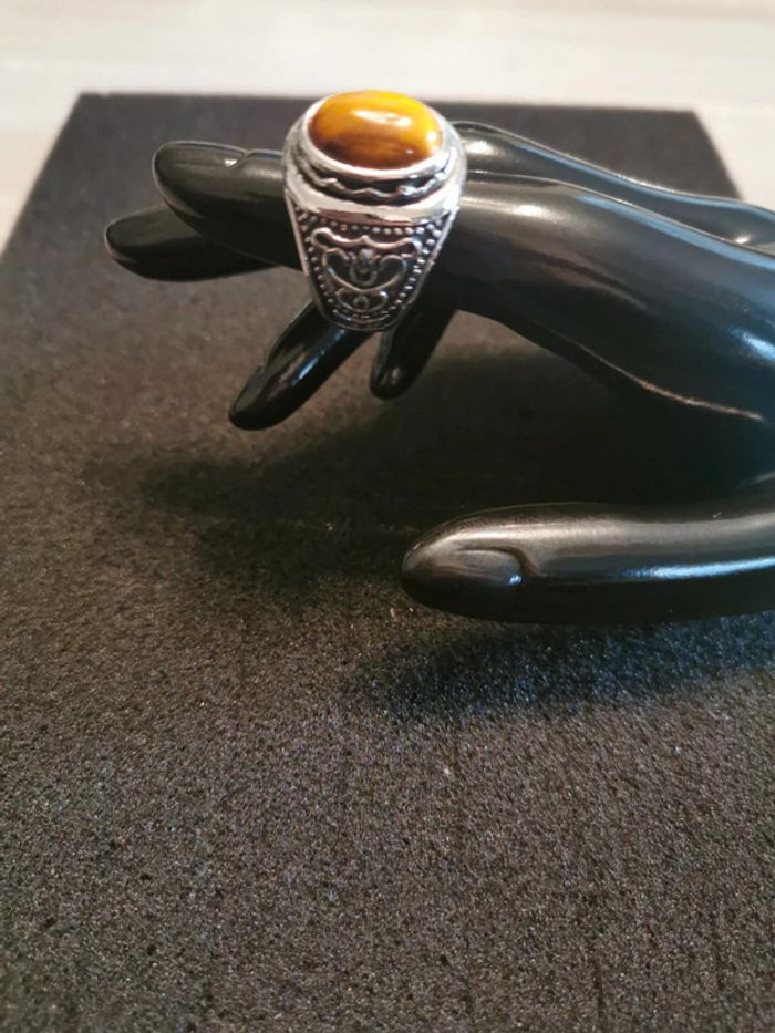 Chevalière homme acier et pierre œil de tigre T 11 - photo numéro 2