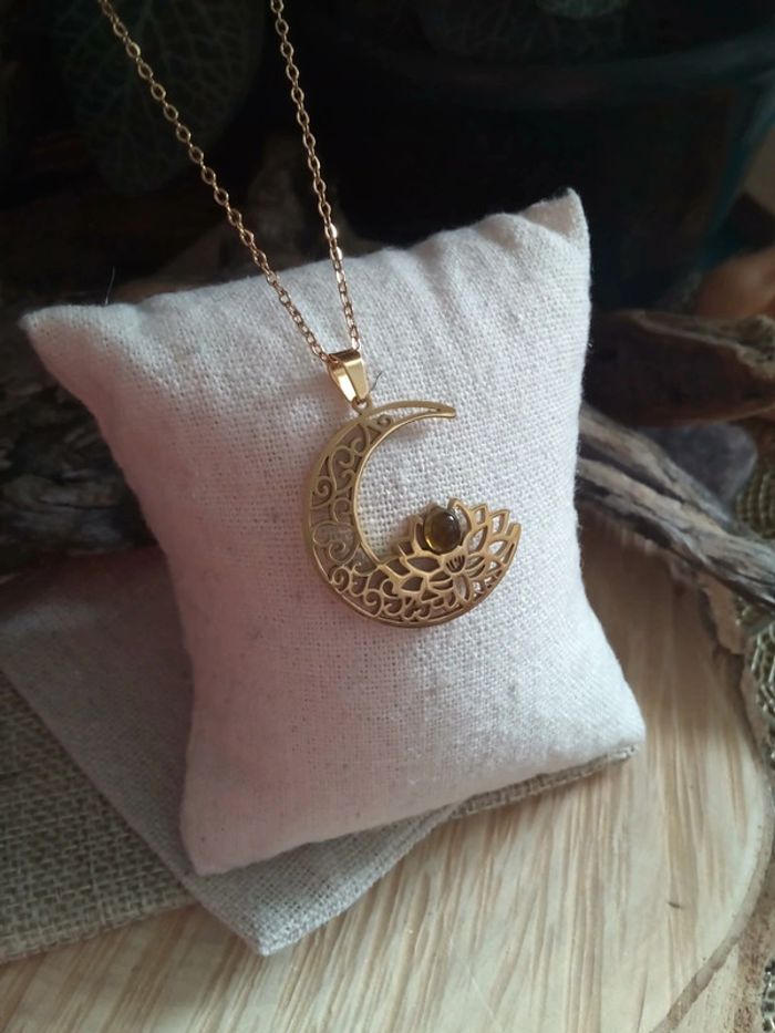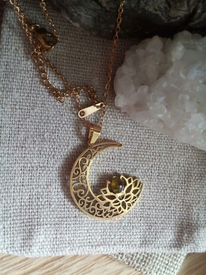 Collier lune lotus et pierre de tourmaline - photo numéro 4