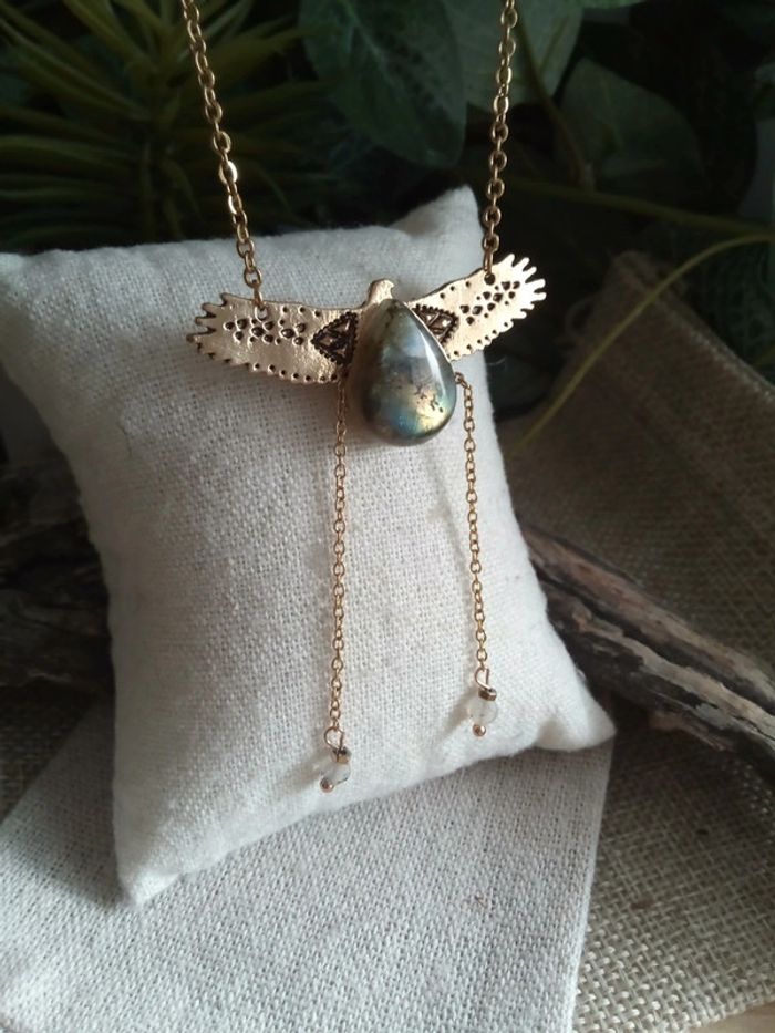 Collier aigle avec pierres de labradorite - photo numéro 1