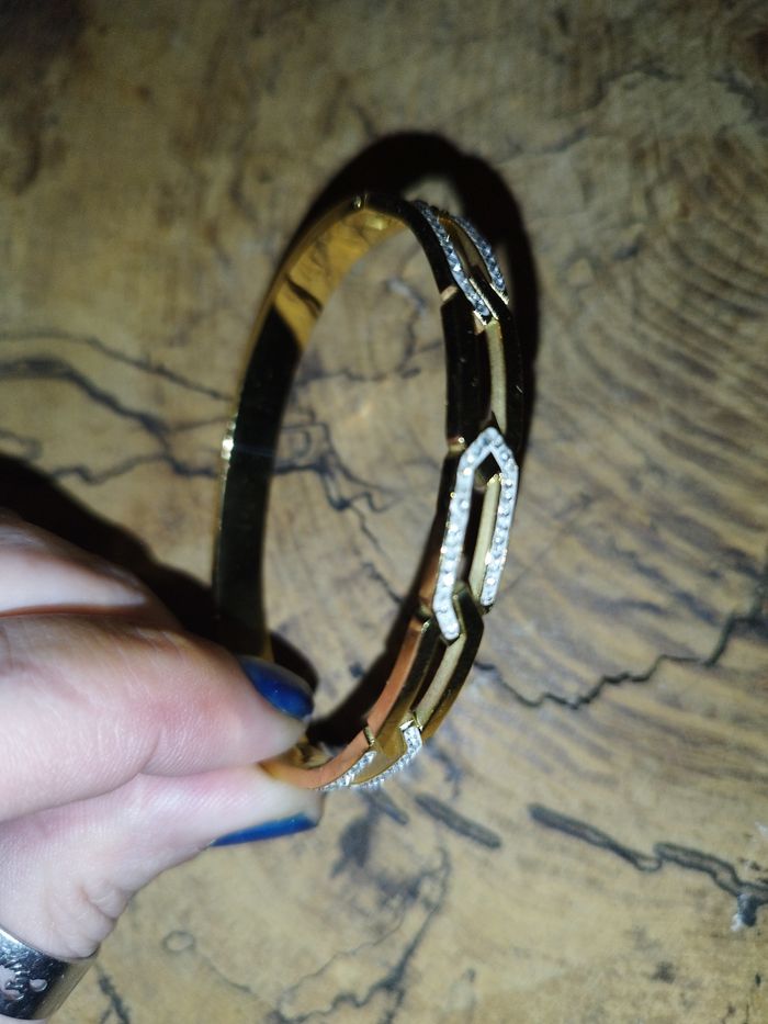 Bracelet (jonc) en acier inoxydable doré avec strass blancs jamais porté