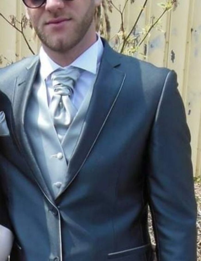 Etat neuf Porté une fois pour un mariage 4h Pantalon 44 veste L 44 gris foncé satiné Lavallière et gilet L gris clair satiné Tres bien taillé, belle qualité