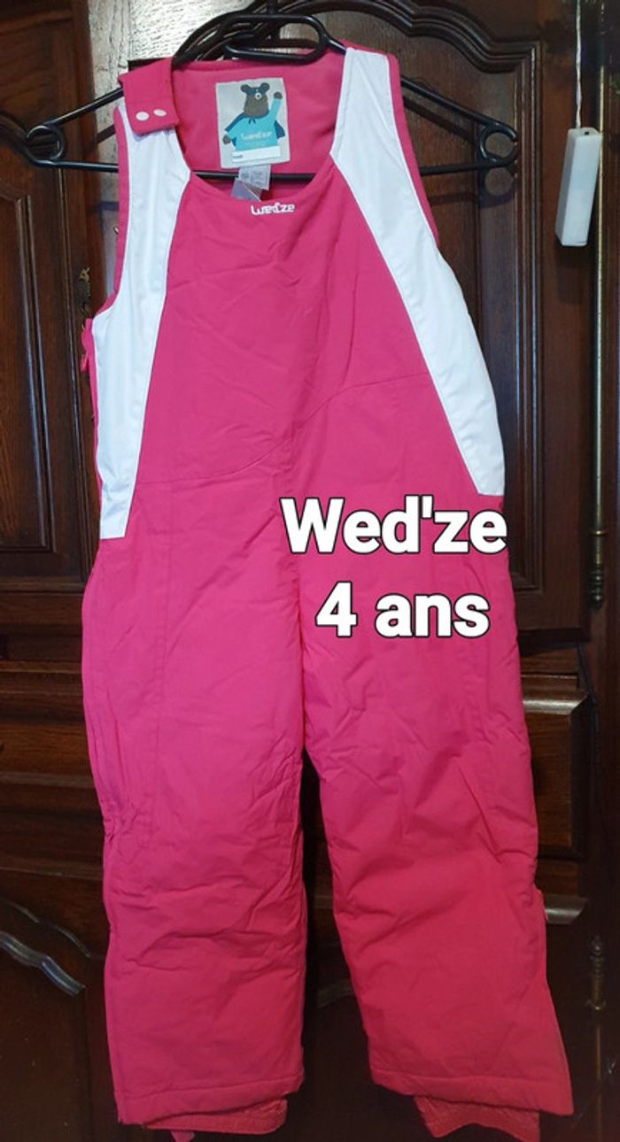 Salopette de ski 4 ans Wed'ze rose Fermeture par zip sous le bras Chevilles élastiques a passer sous les pieds pour que le pantalon ne sorte pas des Chaussures. Foyer non-fumeur si vous achetez, Pouvez-vous choisir mondial relais si possible pour vous merci