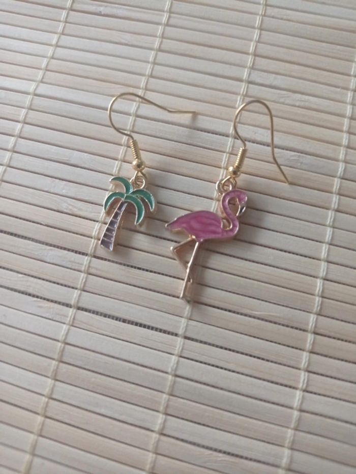 Boucles d'oreilles flamand rose et palmier