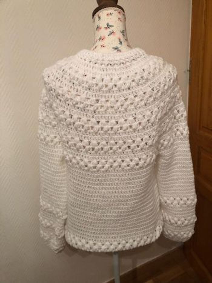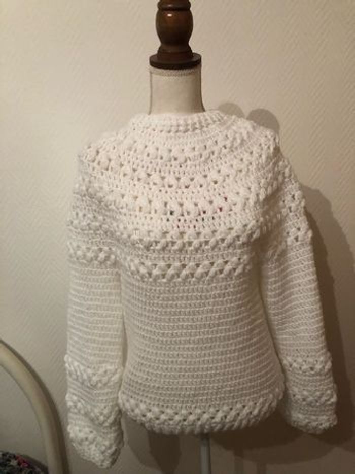 Jolie pull blanc Fait main ( crochet 🧶 En laine Taille 38/40 Lavage à machine à laver à 30 degré Pull neuf jamais porté