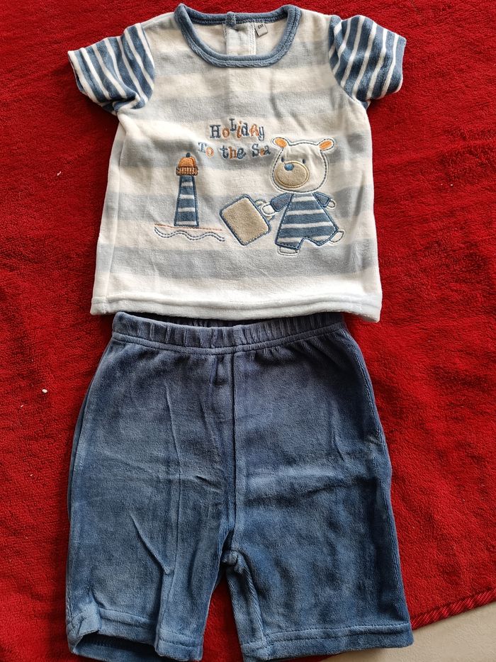 Ensemble short et t-shirt bleu velours - photo numéro 1