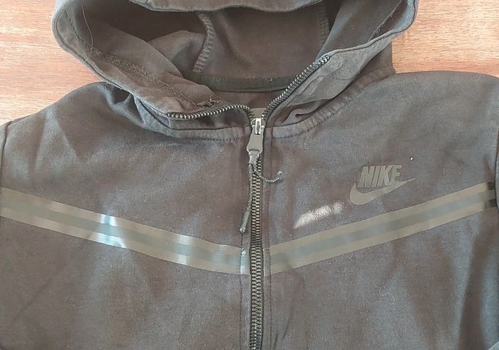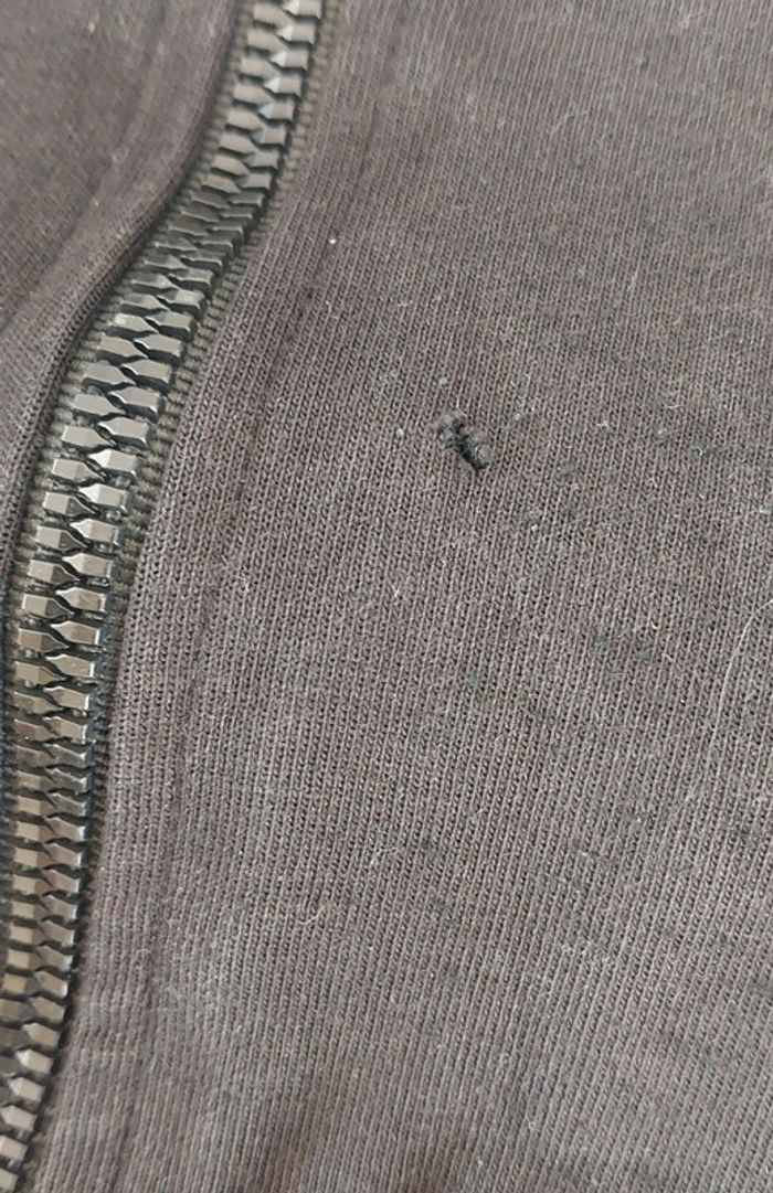Sweat à Capuche Zippé Noir avec le logo. T.XS / 16ANS Longueur : 54cm D'épaule à épaule : 35.5cm Une imperfection, voir photo. En coton.