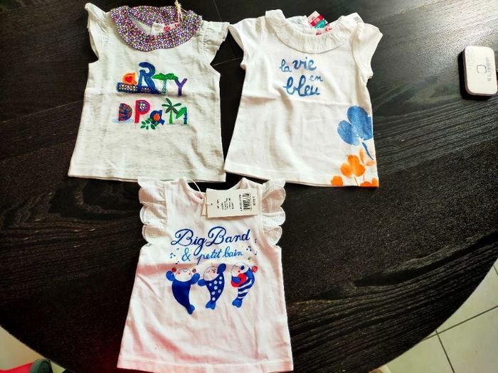 A vendre lot de 3 tee-shirts sans manches. Taille 6 mois. Neuf avec étiquettes. Vente séparée possible