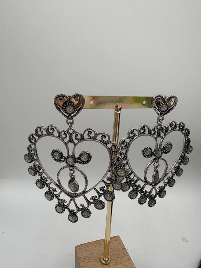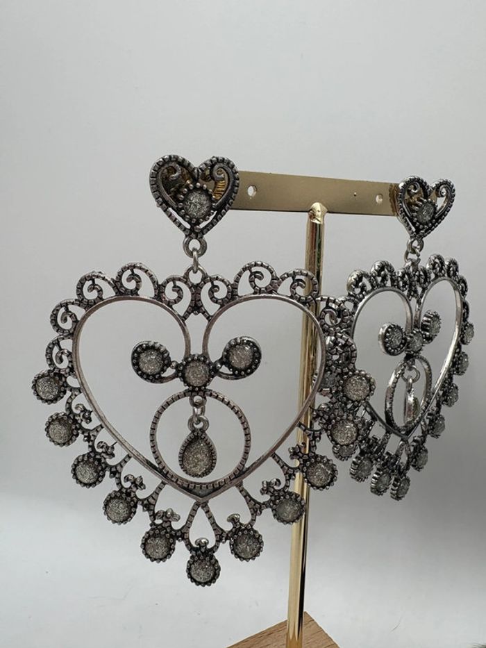 Boucles d’oreilles cœur à clous vintage - photo numéro 4