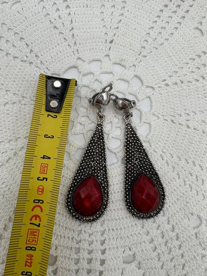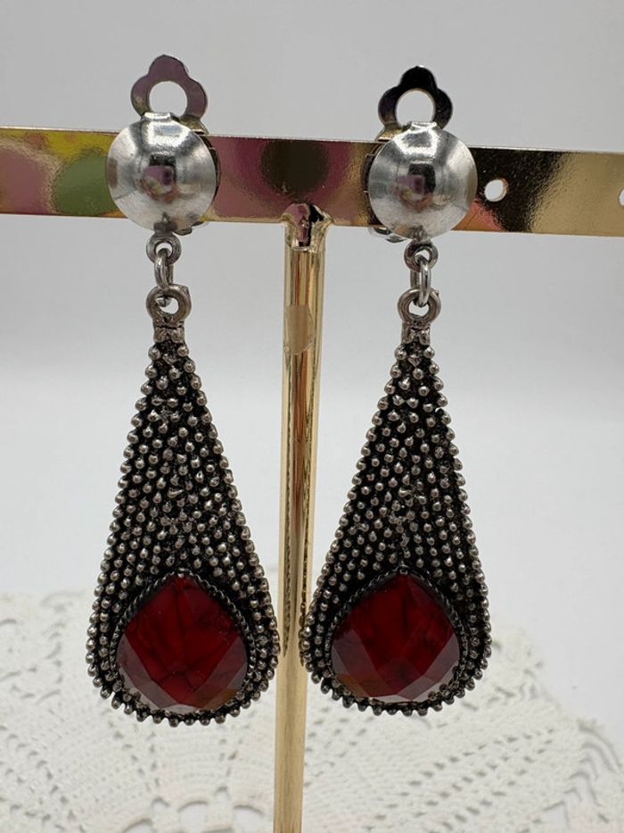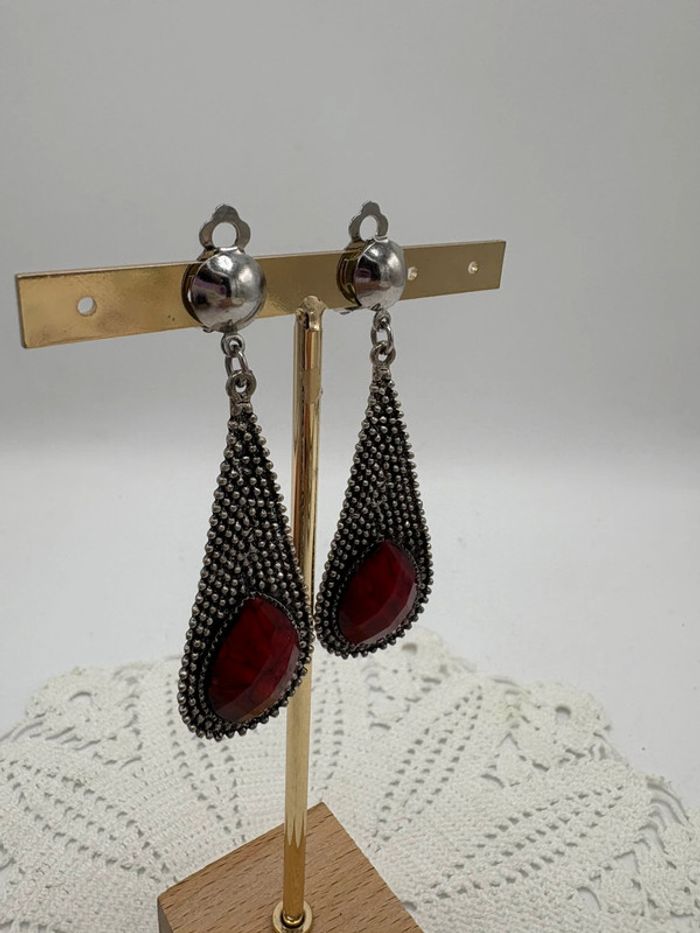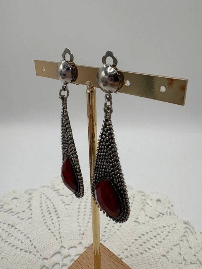 Clips d’oreilles en métal argent et pierre rouge en acrylique Vintage 90’s Très bon état