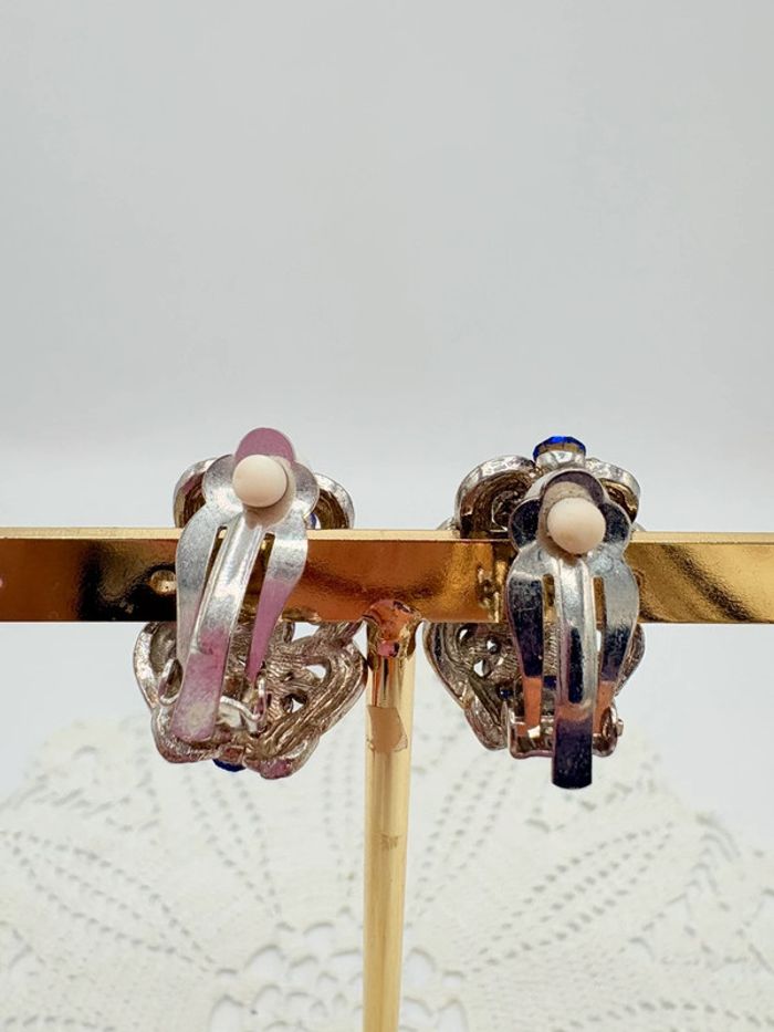 Boucles d’oreilles clips fleurs de strass vintage - photo numéro 5