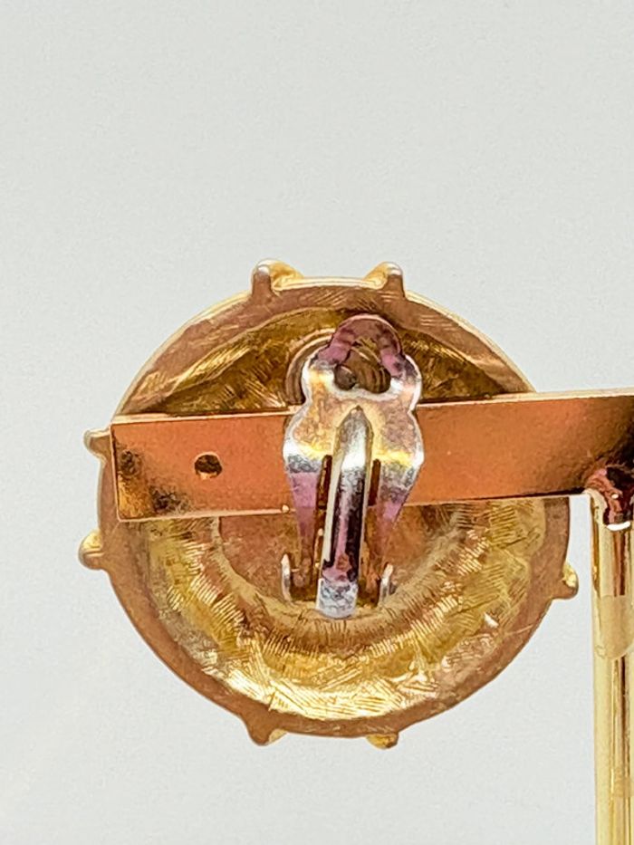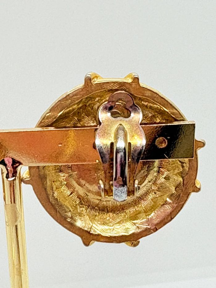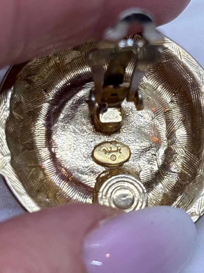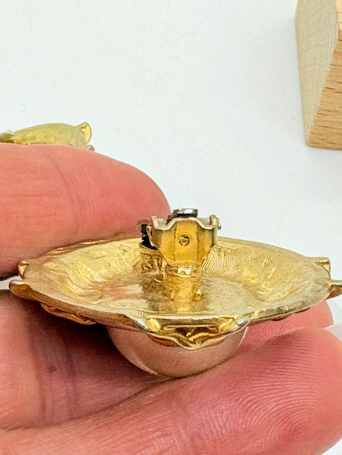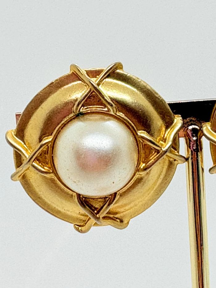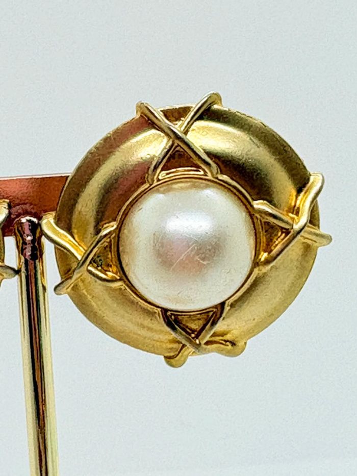 Clips d’oreilles années 80 vintage Nlh Nat Landau Hyman Bon état dorée et perle Voir photos 3,5cm de diamètre