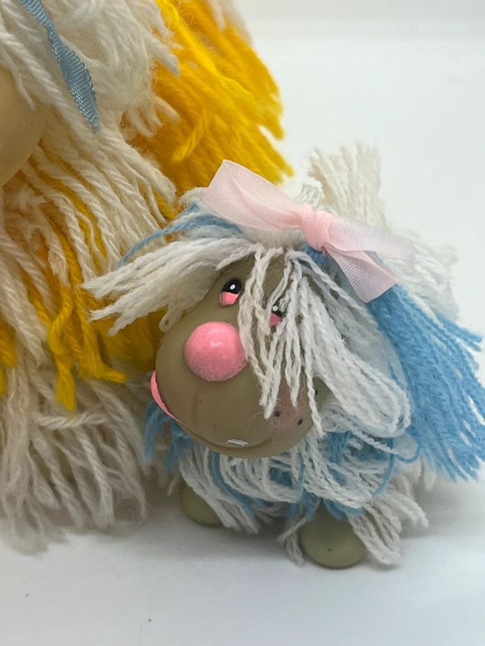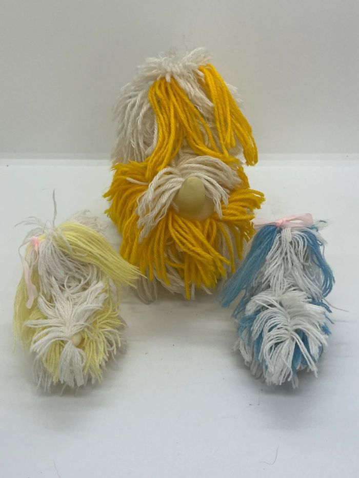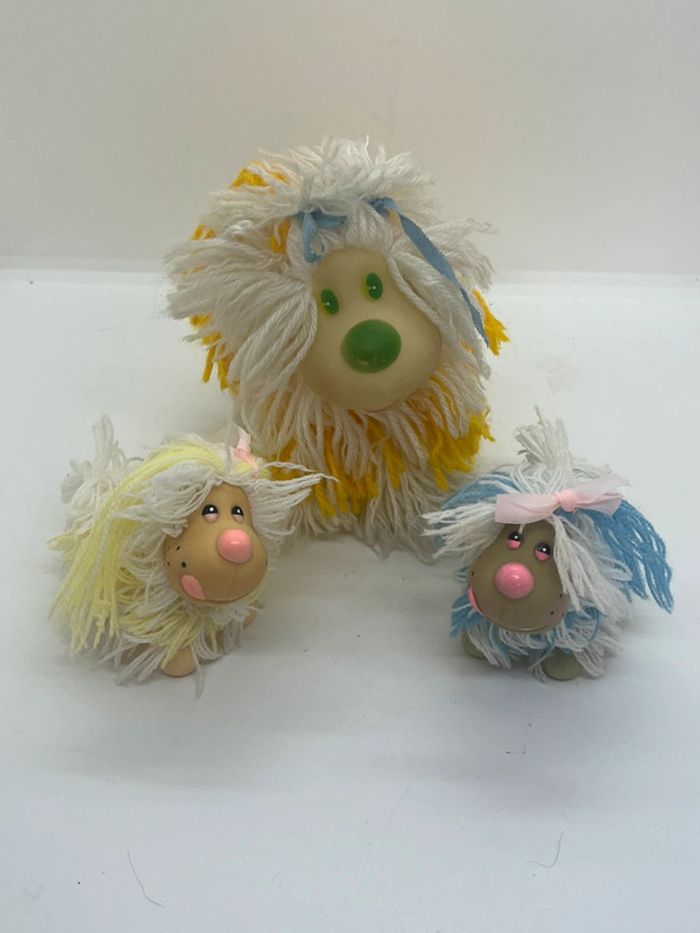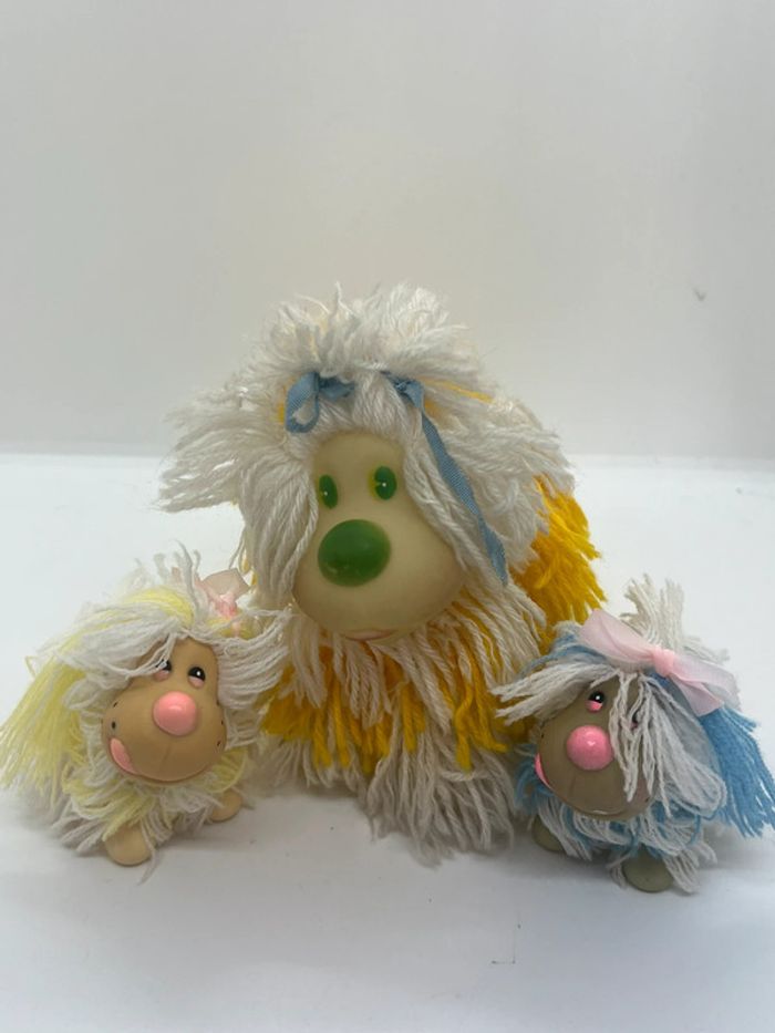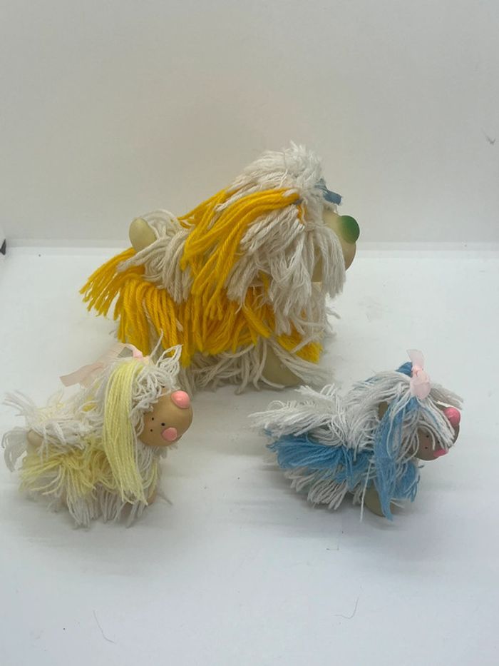 💞 lot 3 flappy dog 💞 vintage années 80 💞 très bon état 💞 maman et ses 2 bébés en laine et caoutchouc.