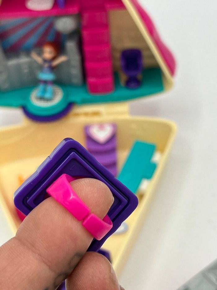 🍰 polly pocket gâteau d’anniversaire 🍰 1 poupée, un chariot à glace et le cadeau bague à l’intérieur incomplet 🍰 très bon état