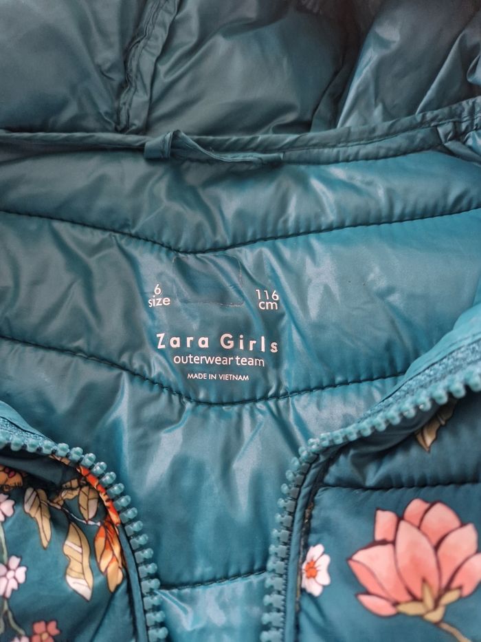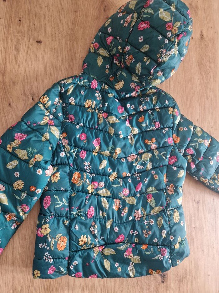 Veste mi saison taille 10 ans avec capuche Marque Zara, de couleur verte motifs fleuris