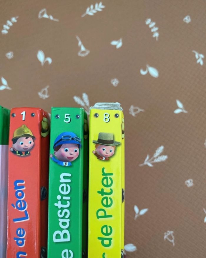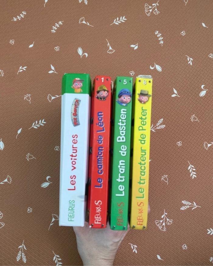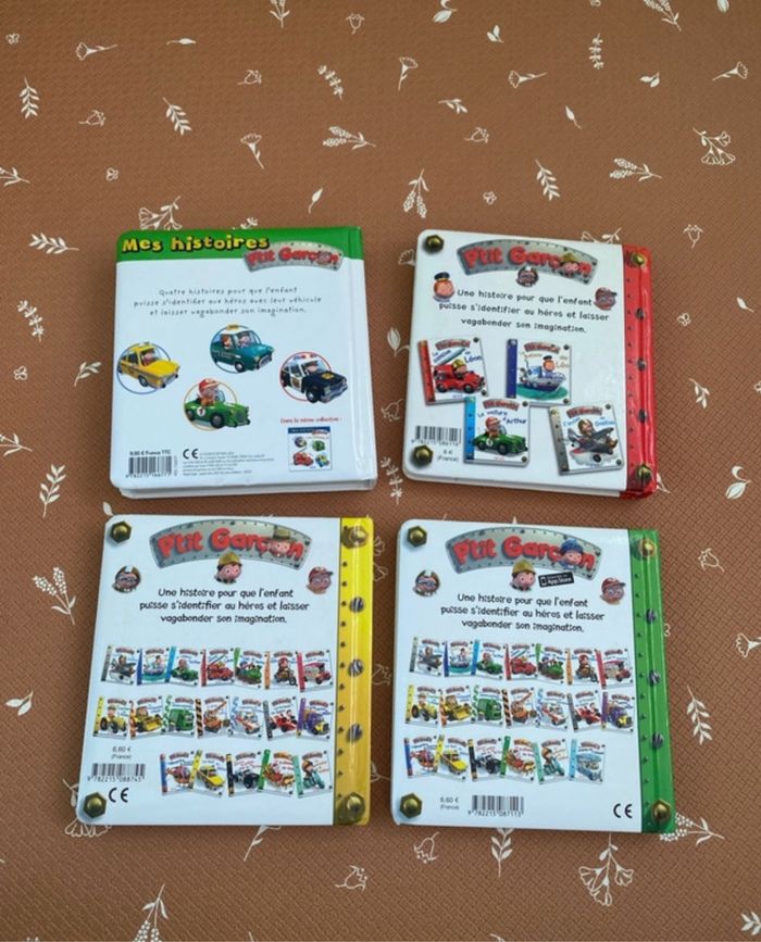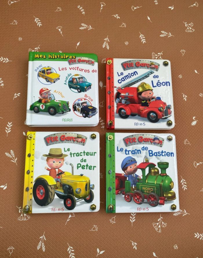 Mes histoires P’tit Garçon : Les voitures de Rémi, Anatole, Arthur et Brice Le camion de Léon Le train de Bastien Le tracteur de Peter ( un peu abîmé sur la tranche, voir photo) Très bon état Fleurus