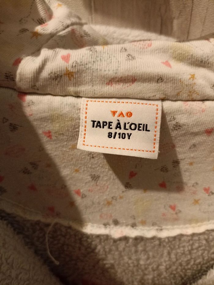De marque tape à l'oeil, robe de chambre style pilou pilou avec capuche et manches doublées tissus. En taille 8 à 10 ans. Se ferme avec un noeud à l'intérieur et un autre à l'extérieur. En excellent état, brodé au dos "super copine" #rosered16fille #8arosered16 #10arosered16